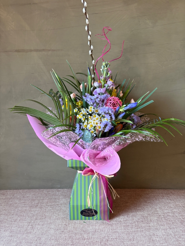 Presented in a striped gift box with a bright ribbon, it’s a delightful way to celebrate the beauty of spring.